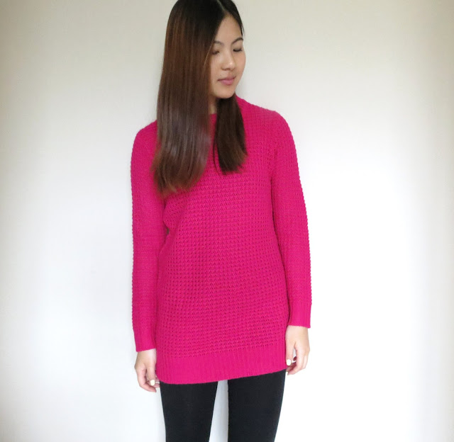 Step 1: Find a sweater to work with. I got mine from Forever21 last year, and wore it maybe twice. I love the bright color, but the fit is too boxy and boring. I suggest using a sweater that you wouldn't mind destroying on your first try! I'm sure you could easily find one from a thrift store for less than $5.